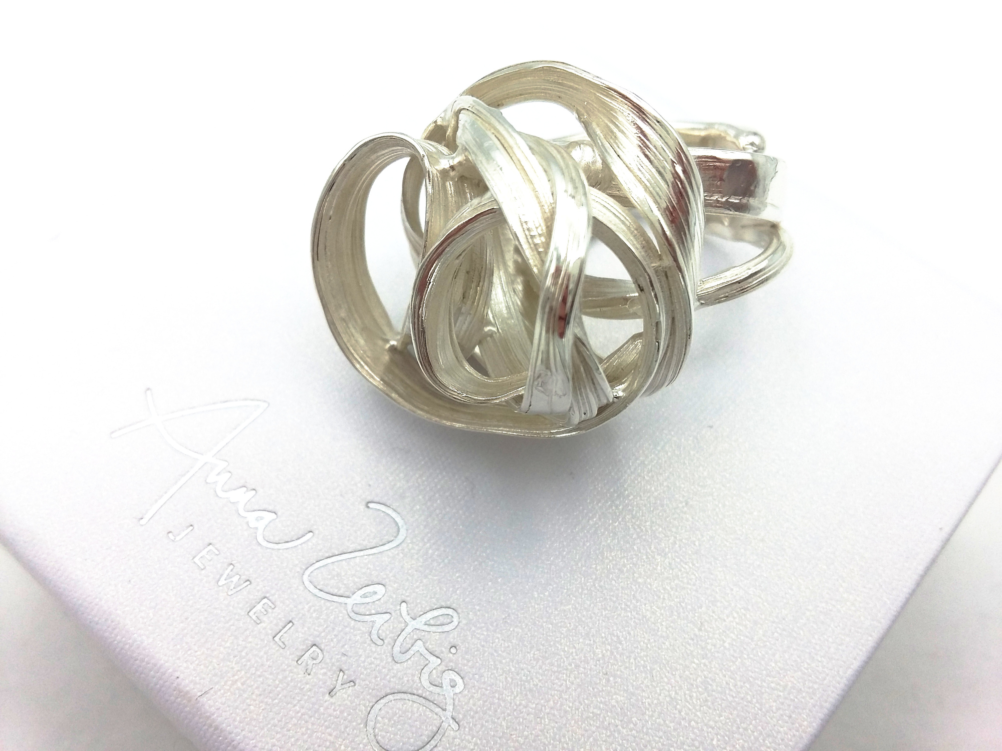 Unique handmade ring using an ancient Japanese technique called Mitsuro Hikime. This technique is nearly on its way to extinction. This method requires a calm mindset, resilience to failure and an open mind to accidental and unique outcomes. Each piece is one of a kind and impossible to replicate. Anna Zeibig is one of the few jewelry artists in the world keeping this beautiful technique alive. This ring is size 15/55/US 7 1/2.