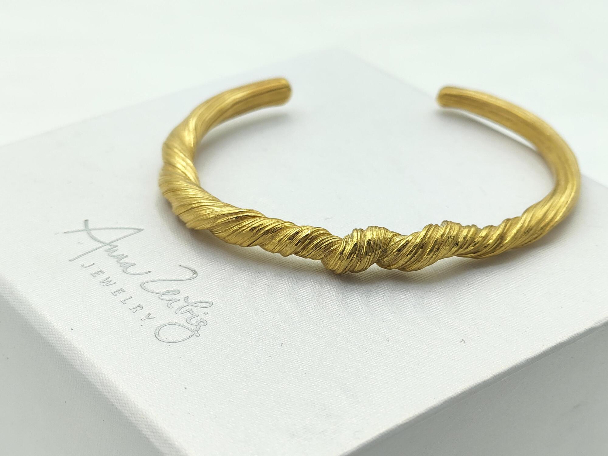 Unique handmade bracelet using an ancient Japanese technique called Mitsuro Hikime. This technique is nearly on its way to extinction. This method requires a calm mindset, resilience to failure, and an open mind to accidental and unique outcomes. Each piece is one of a kind and impossible to replicate. Anna Zeibig is one of the few jewelry artists in the world keeping this beautiful technique alive. If it's sold out but you'd like a similar one, please send a message. Please keep in mind that a new piece can't be exactly like this. Do you prefer gold or gold plated? Please contact for a quotation!