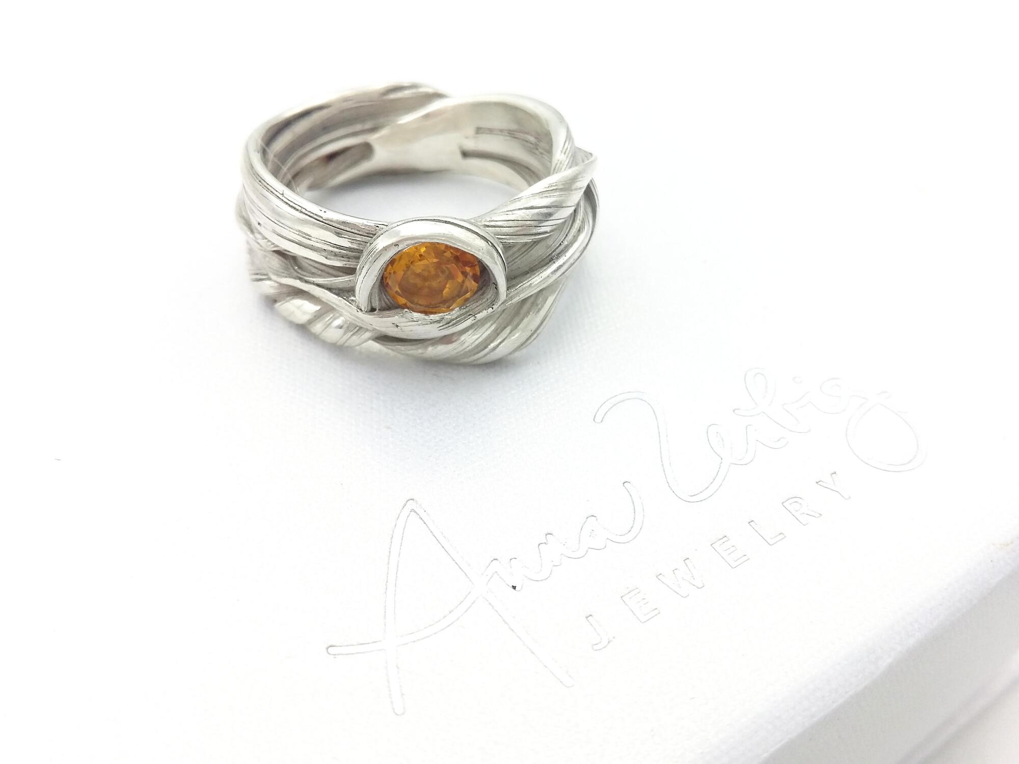 Gorgeous statement ring featuring an amazing citrin. This ring is meticulously crafted using an ancient Japanese wax technique that ensures every detail is captured with precision and authenticity. A truly one-of-a-kind piece that is sure to be treasured for years to come.