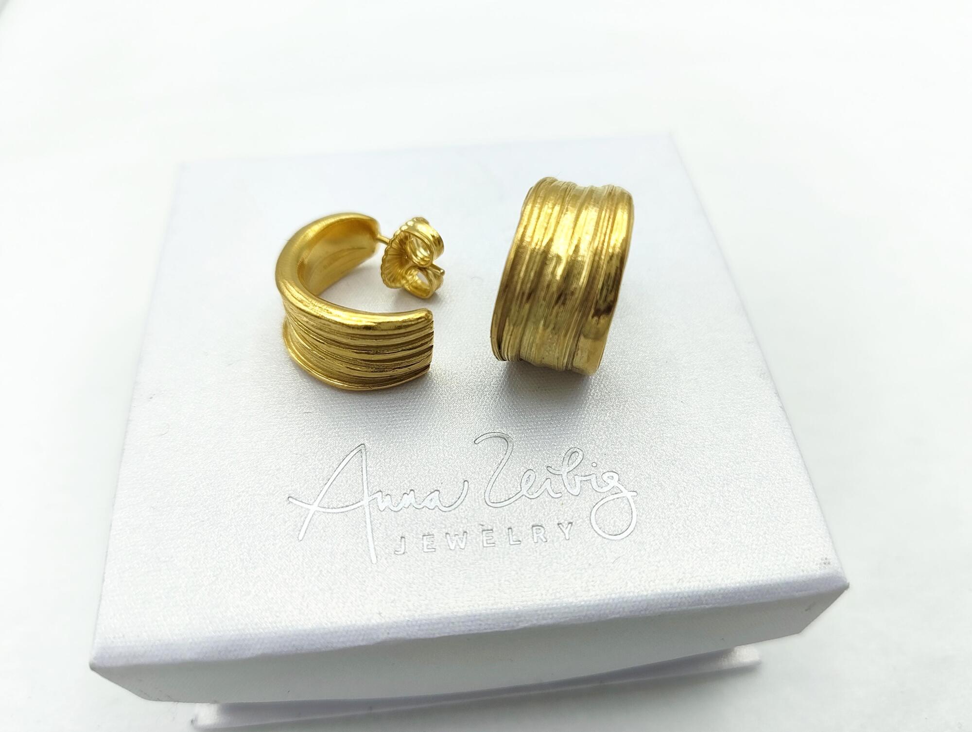 Unique handmade hoops using an ancient Japanese technique called Mitsuro Hikime. This piece is gold plated silver. Do you prefer gold? Please contact for a quotation!