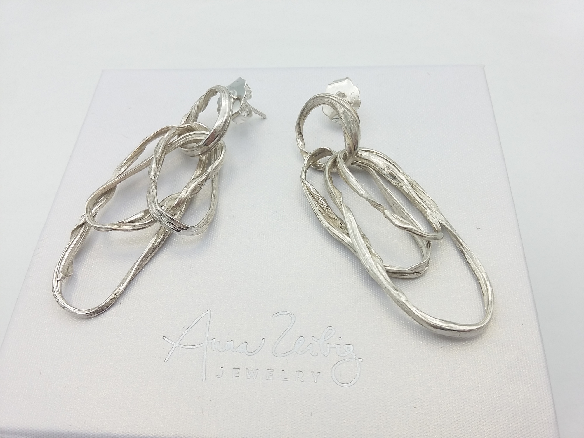 Asymmetrical handmade earrings using an ancient Japanese technique called Mitsuro Hikime. Each piece is literally one of a kind, there is only 1 pair exactly like in the photo. Do you prefer gold? Please contact for a quotation!