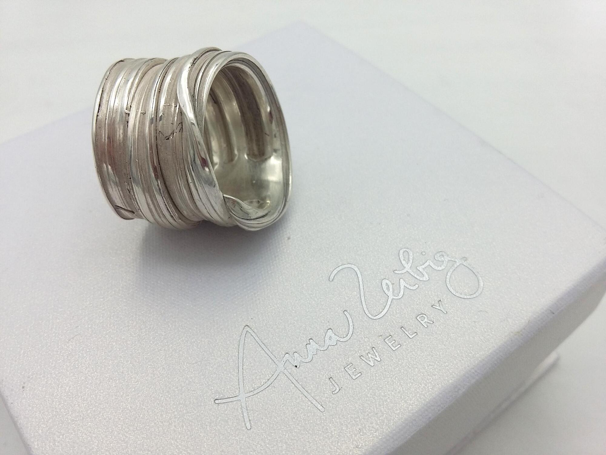 Unique handmade ring using an ancient Japanese technique called Mitsuro Hikime. This technique is nearly on its way to extinction. This method requires a calm mindset, resilience to failure and an open mind to accidental and unique outcomes. Each piece is one of a kind and impossible to replicate. Anna Zeibig is one of the few jewelry artists in the world keeping this beautiful technique alive.