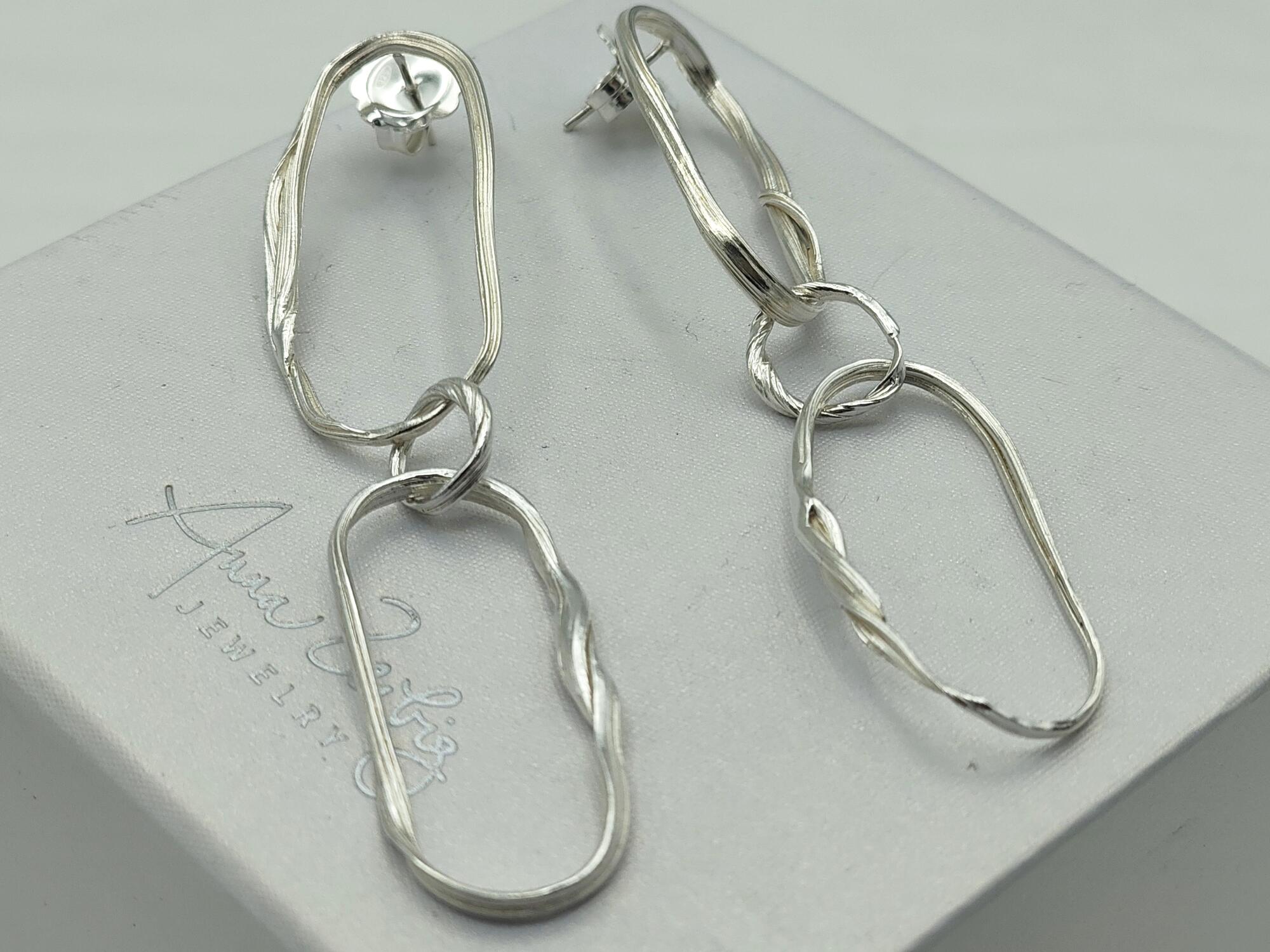 Asymmetrical handmade earrings using an ancient Japanese technique called Mitsuro Hikime. Each piece is literally one of a kind, there is only 1 pair exactly like in the photo. Do you prefer gold? Please contact for a quotation!