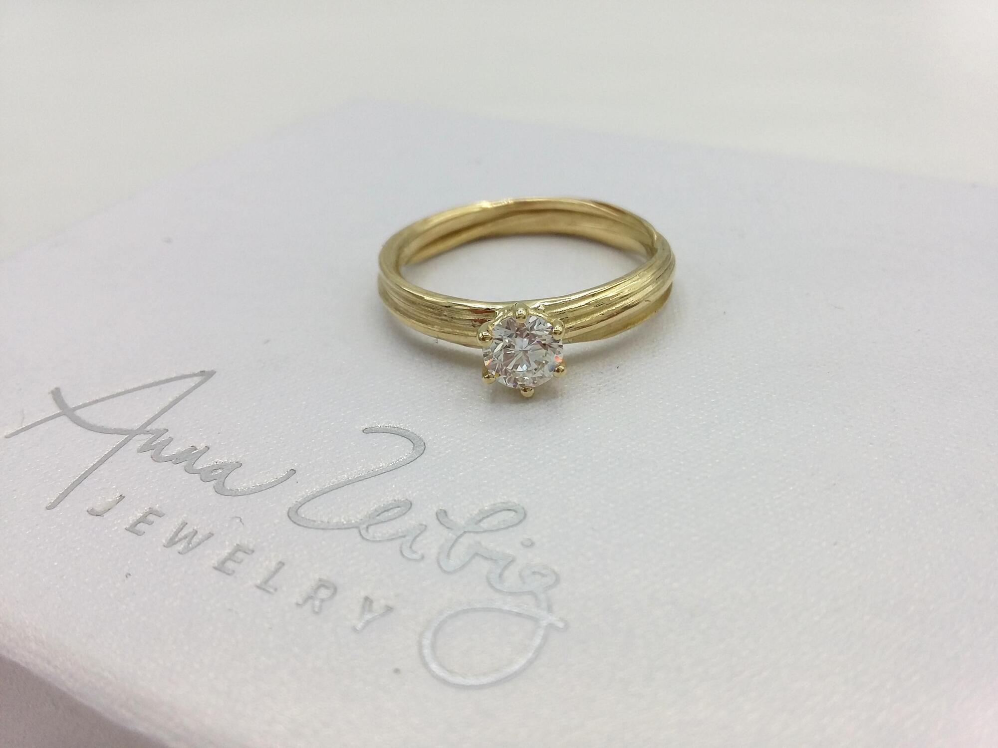 Sleek 14k gold engagement ring featuring a 4.3 mm diamond in six prong setting. This ring is part of my latest wedding ring collection, crafted using a centuries-old Japanese wax technique that adds a unique touch of elegance and sophistication to every piece. Each ring is meticulously handcrafted with precision and care, ensuring the highest level of quality and attention to detail. Experience the timeless beauty of Japanese wax artistry with my stunning new collection. Each piece is one of a kind and impossible to replicate, you can order a similar ring made in your size in 14k yellow, white or rose gold. This price is only orientative, it depends on the actual gold price, weight and stone price. Happy to customize it to fit your style and size, drop an email and let's talk! Please contact for quotation!