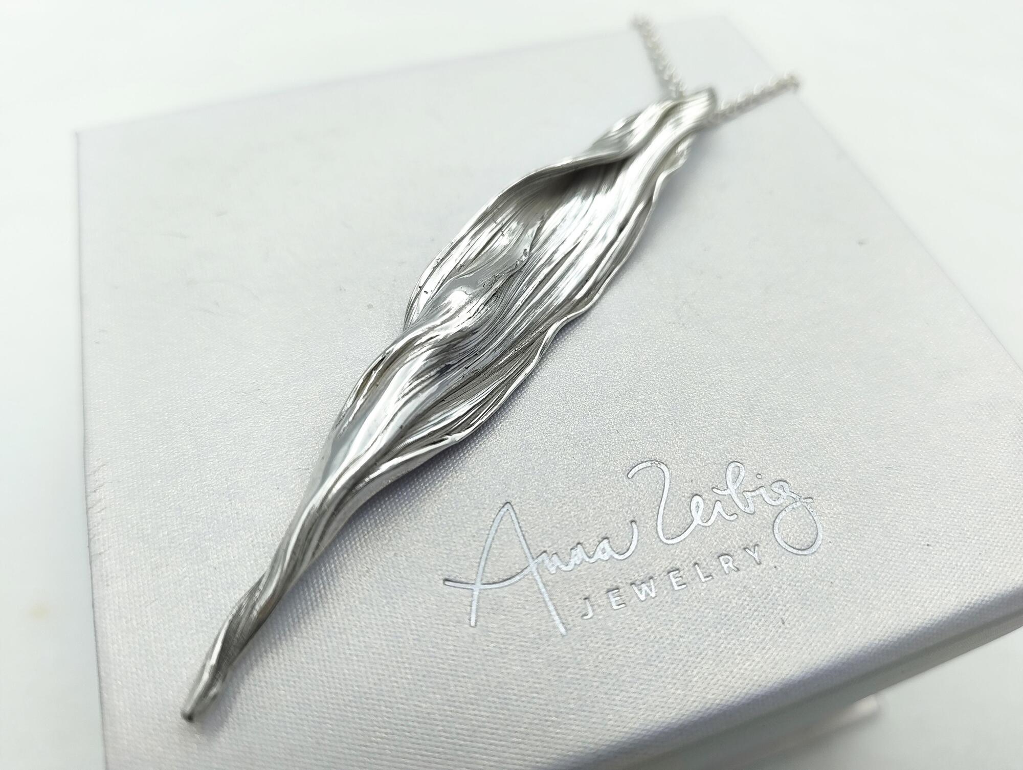 Unique handmade necklace using an ancient Japanese technique that is nearly on its way to extinction. This method requires a calm mindset, resilience to failure, and an open mind to accidental and unique outcomes. Each piece is one of a kind and impossible to replicate. Anna Zeibig is one of the few jewelry artists in the world keeping this beautiful technique alive.